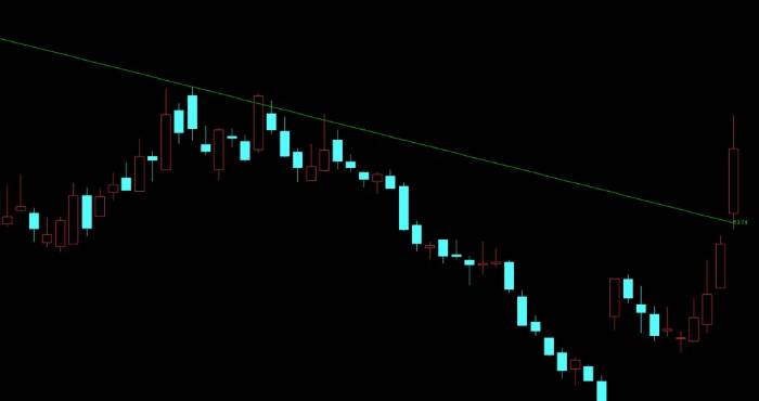 突破下降趋势切线主图/副图/选股指标,突破短压选股,收盘股价站上下降趋势切线,可以视为转势!