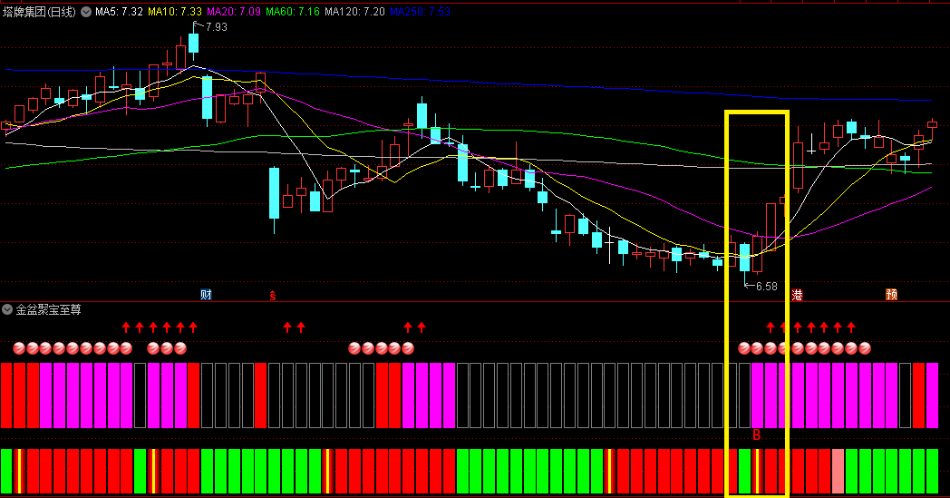 某财经视频博主的【金盆聚宝至尊】副图指标 四组信号叠加或前后出现成功率更高 通达信 源码