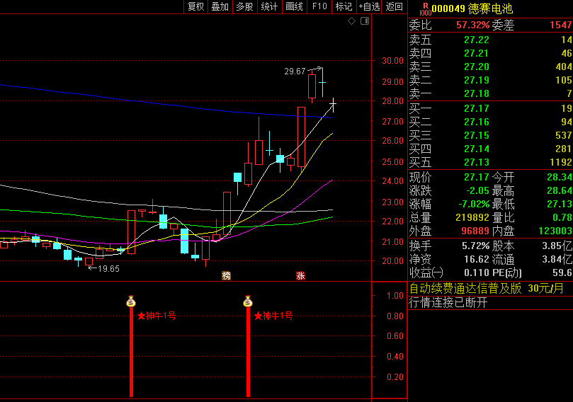 盘中预警与盘后选股结合:“神牛1号”指标既适用于盘中实时预警,也适合盘后进行选股分析。投资者可以根据自己的交易习惯和风险承受能力,灵活选择使用方式。
