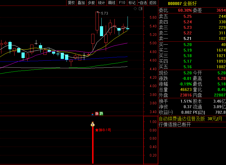以近期市场中的锦江在线、大众交通等股票为例,它们在启动强势上涨之前,均成功触发了“神牛1号”信号。这一事实不仅验证了该指标的准确性和有效性,也进一步展示了其在实战中的广泛应用价值。通过及时捕捉并跟进这些信号,投资者能够把握住市场的先机,实现投资收益的最大化。