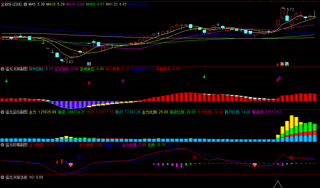 猛龙决策套系指标,包含猛龙吸筹、猛龙决策、猛龙监控三个副图指标及选股指标,指标没有未来函数。