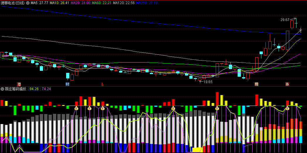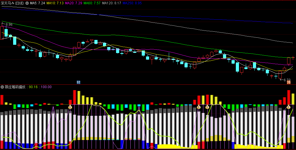 跟庄筹码擒妖副图指标,精准刻画散户筹码、资金流动及主力筹码的动态变化,提供全面的市场分析视角