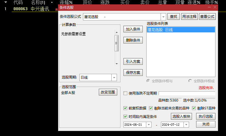 选股预警:利用选股预警指标筛选出符合“强势介入破五逃跑”、“追涨不追高”及“量是对价的肯定(黄金倍量柱)”三大条件的个股。