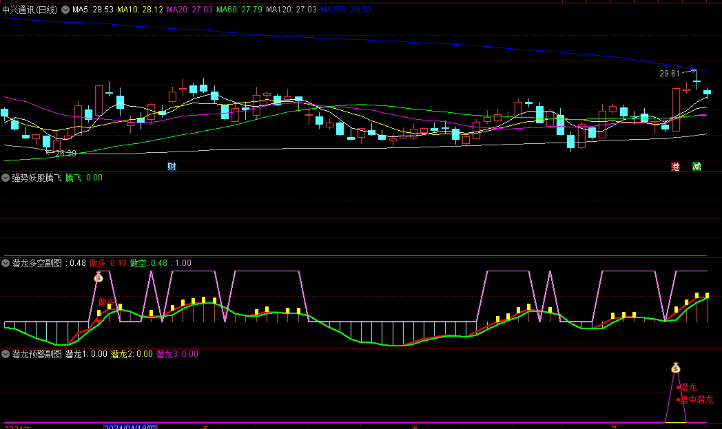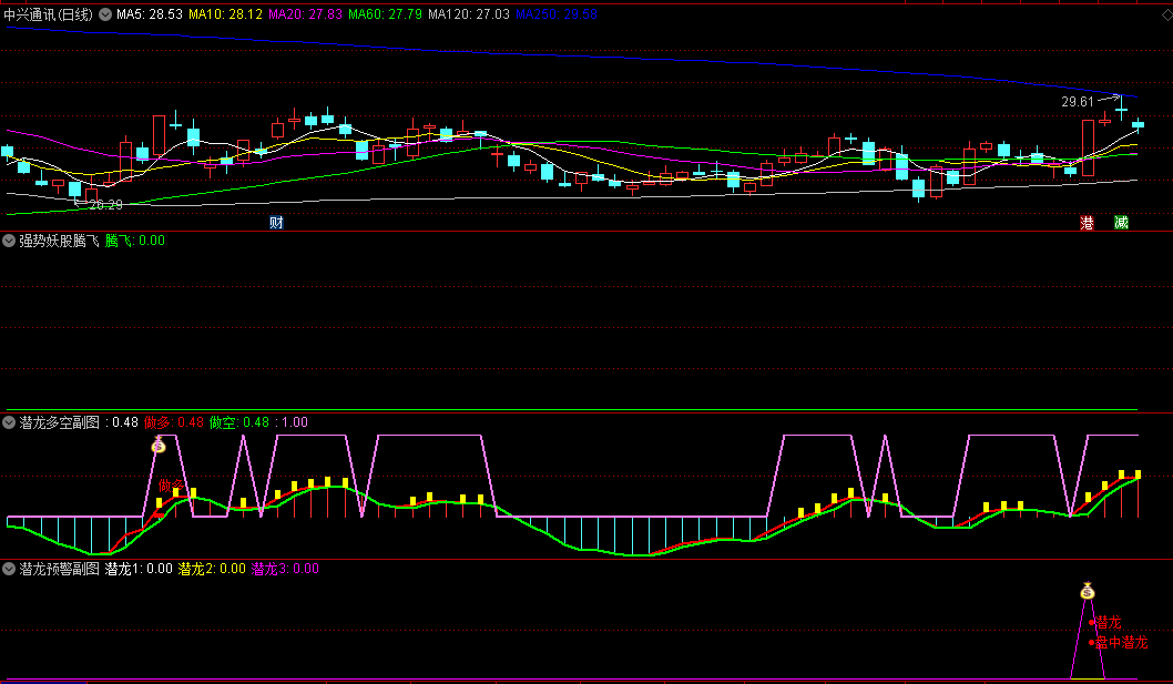 精选〖强势妖股腾飞〗副图/选股指标,强势妖股腾飞+潜龙多空+潜龙预警,一套高效、精准的短线交易系统!
