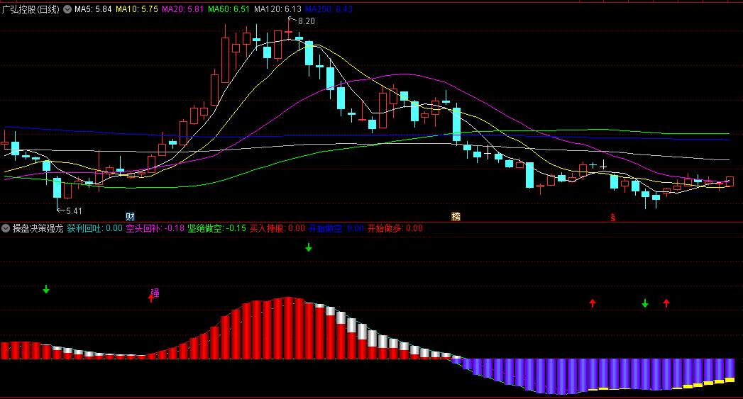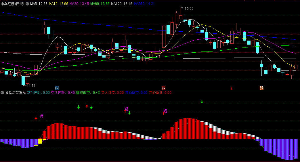 操盘决策强龙副图指标是一种高效的技术分析工具,专为股票市场投资者设计,旨在通过直观的图形和信号提示,帮助投资者捕捉股价上升趋势中的买入机会。以下是对该指标的详细解读及使用方法: