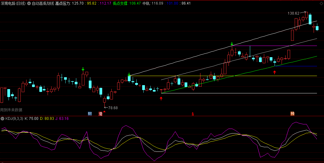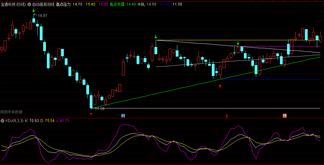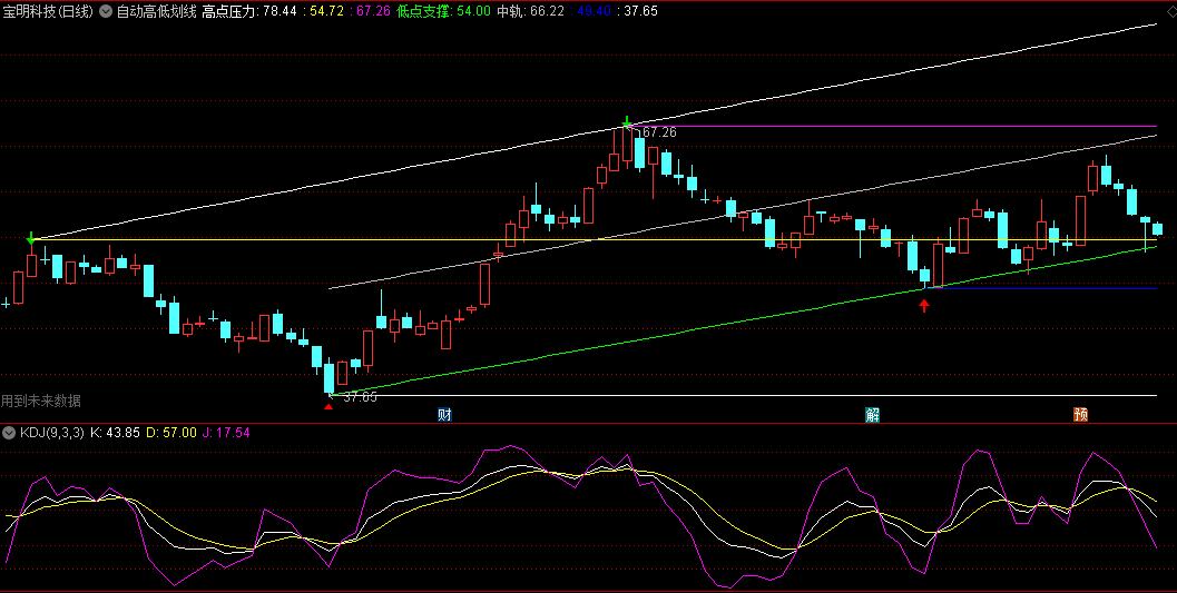 自动高低划线主图指标,分享给喜欢研究趋势的朋友,研究压力和支撑的有效工具!