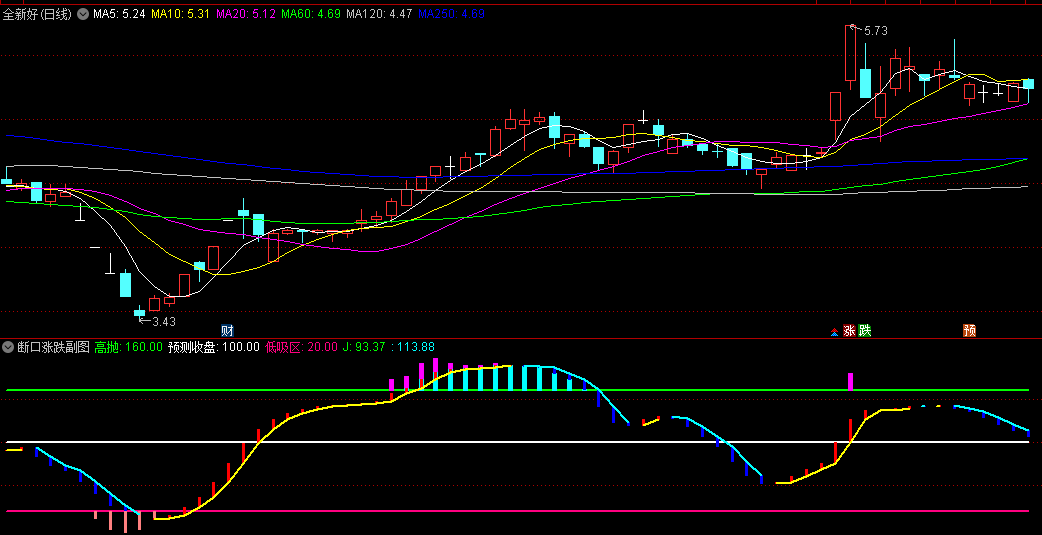 指标中的“断口”是指市场价格走势中出现的重要转折点或支撑/阻力位。通过监测这些断口的变化,指标能够提前预判市场的后期走势,为投资者提供宝贵的交易信号。