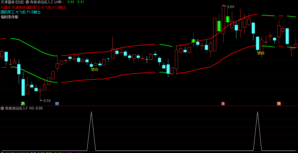 结合MACD使用:为了进一步提高交易成功率,建议将“布林波动买入”指标与MACD指标结合使用。当“波动”信号出现时,若MACD同时在高位形成死叉,则可能是市场反转的信号,此时应果断回避该股票。