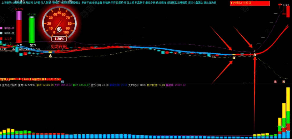 主力多空罗盘指标,此套装包含:主力多空罗盘主图+主力多空进出副图+主力多空罗盘选股指标;