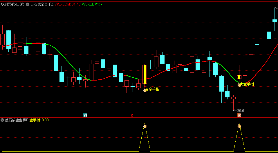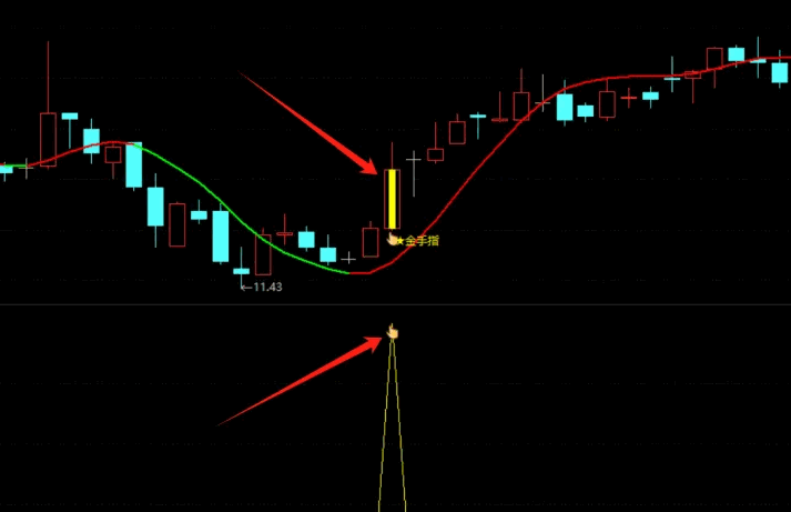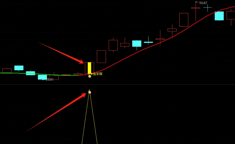 “金手指”信号:在符合特定条件的情况下,主图上会出现“金手指”信号。这一信号是点石成金金手指指标的核心,它通常出现在红色多头均线上方,预示着市场即将出现一波上涨行情。投资者应重点关注这些信号,因为它们往往伴随着较高的盈利机会。