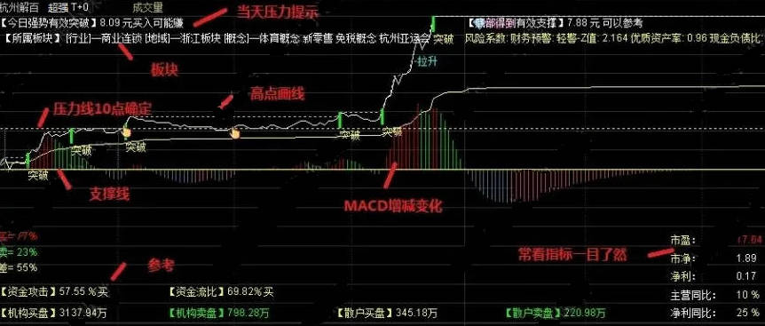 〖超强分时T0〗分时主图指标 功能集成 看盘方便 T+0操作 支撑和压力10点确定 用于通达信