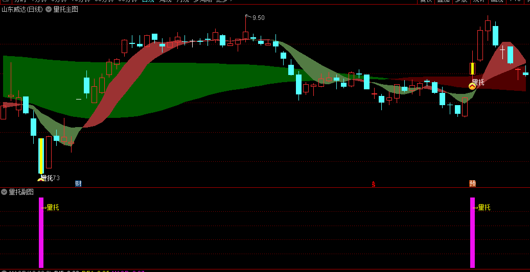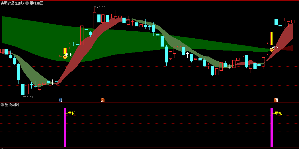 量托,按周期分类:可分为“月量托”(5日、10日和20日)和“季量托”(20日、40日和60日),其中月量托灵敏,而季量托稳定。这个可根据自己的需求自行修改。