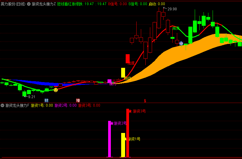 游资龙头接力擒龙主升浪主图和副图指标 游资接力擒龙信号一目了然