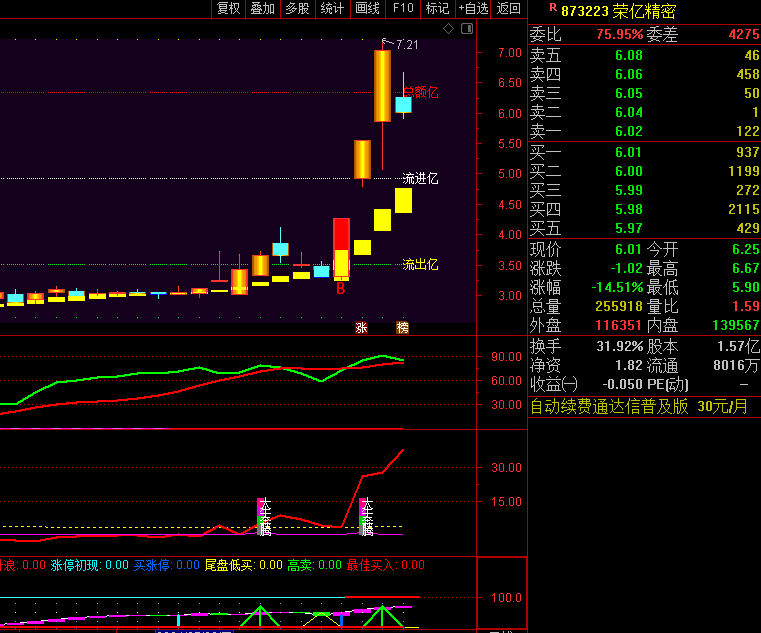 高位转蓝与卖点信号:当主图上的色带由黄色转为蓝色,或在高位时附图出现明确的卖点信号时,投资者应提高警惕,及时止盈以锁定利润,避免行情逆转带来的损失。