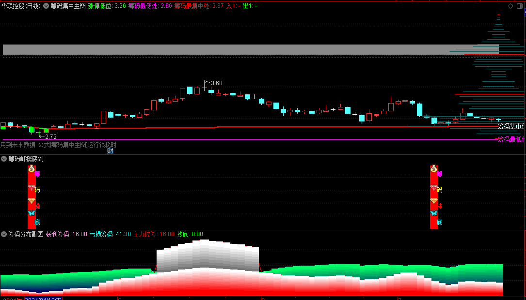 支撑与阻力作用:当股价上涨至筹码峰位时,由于大量筹码持有者可能选择卖出,因此该区域往往形成阻力;相反,当股价下跌至筹码峰位时,由于投资者可能积极买入,该区域则成为支撑。