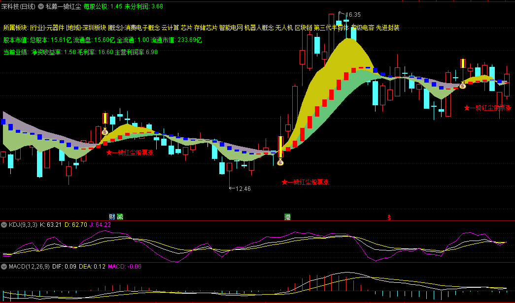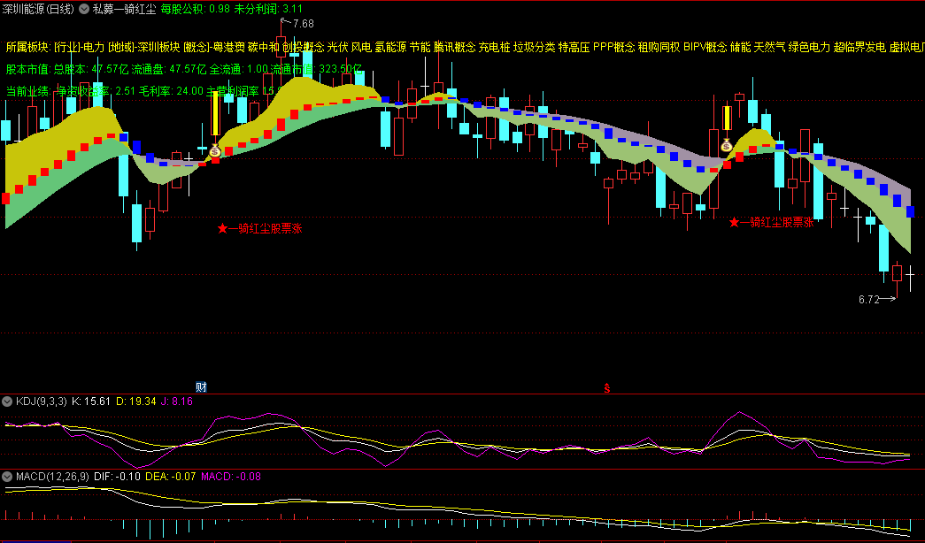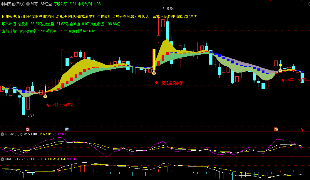 私募一骑红尘股票涨主图指标包含基本资讯和底部共振!