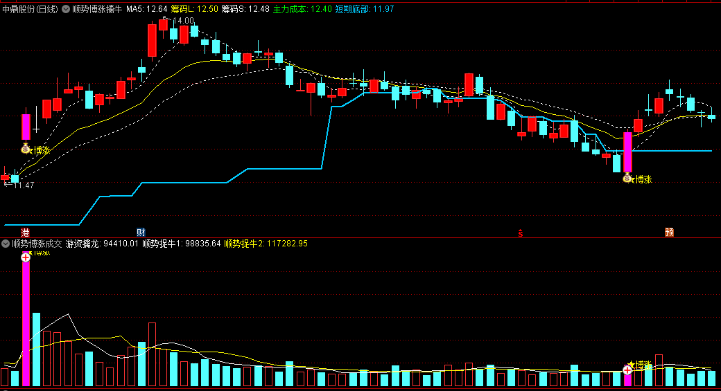 游资顺势博涨擒牛主图指标,游资顺势博涨突破擒牛,抓趋势主升浪,顺着主力能量来抓牛股!!
