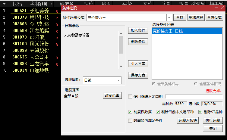 今天做个简单分享,竞价接力公式使用时间为竞价时间,出票以竞价出票为准!仅供参考,不做为决策依据。