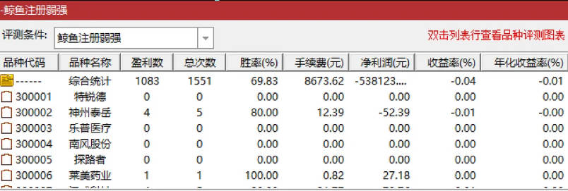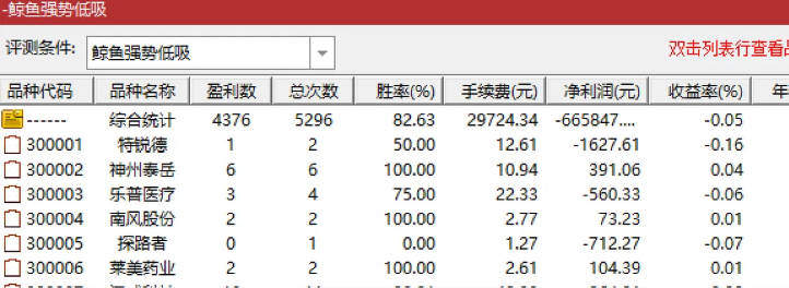 这次给大家分享一套很不错的精品指标,鲸鱼选股系列,是专门用在创业板上的,从21年到今天的胜率很不错。