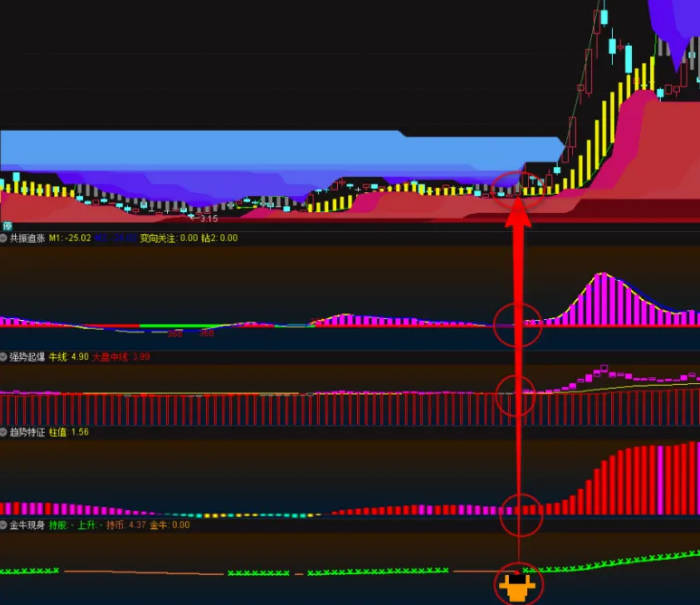 5. 紫色柱表示短线趋势和中线趋势共振走强。