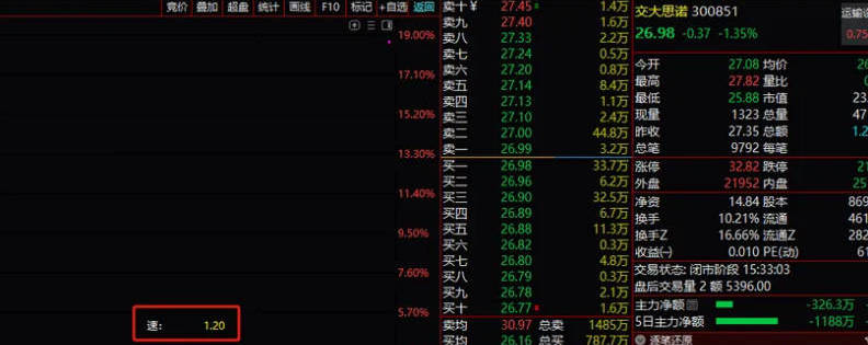 天下武功,唯快不破,通达信【涨速随时显示】分时主图指标,分时主图上面如何随时显示涨速?使用本指标即可!