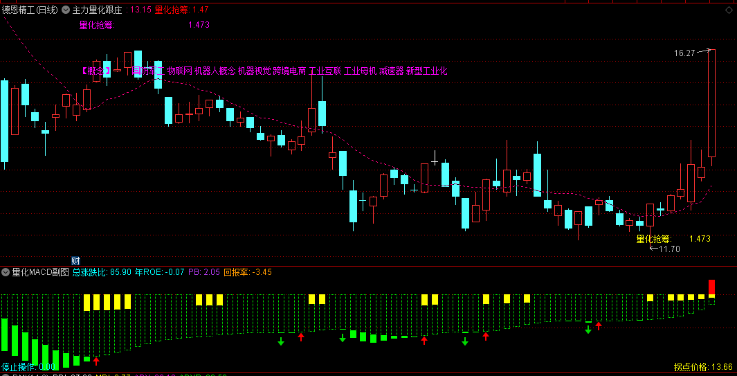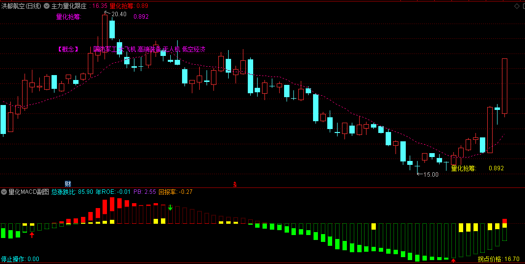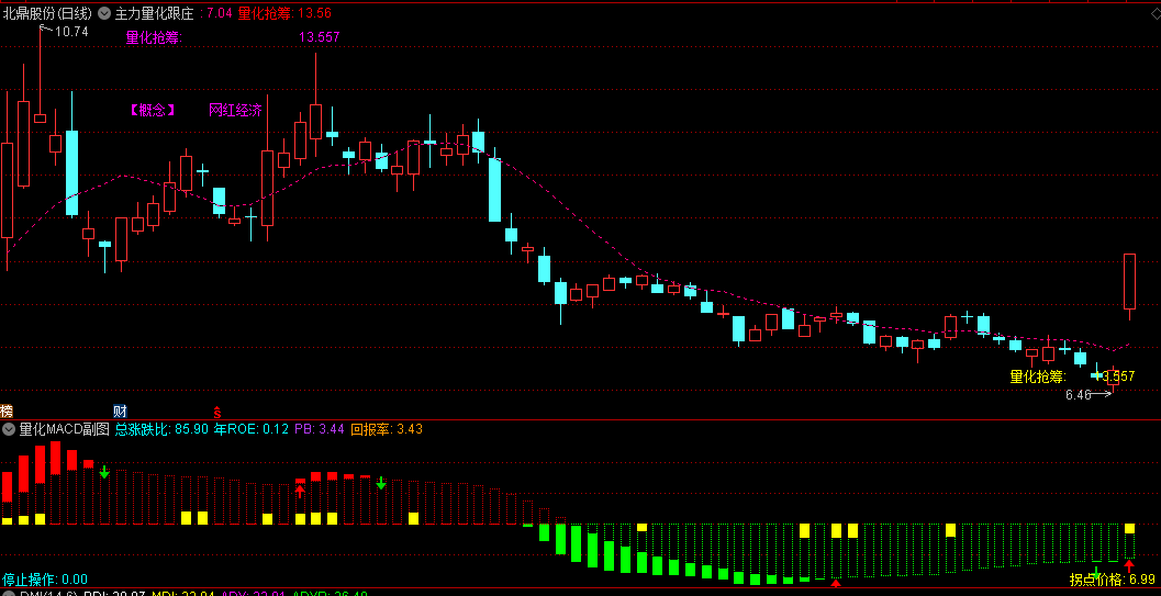 【主力量化跟庄】主图+【量化MACD】副图指标,量化擒龙信号准,主副图共振成功率高!