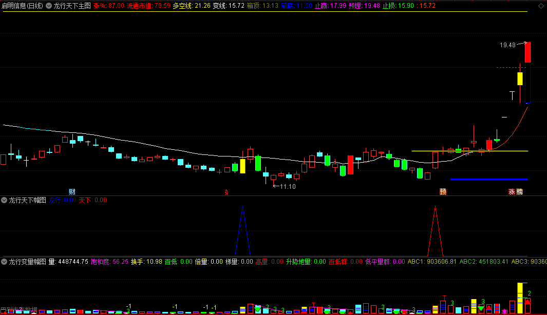 包含龙行,天下两个选股信号,信号出现后有一定的概率会走一波主升浪行情,信号仅供参考