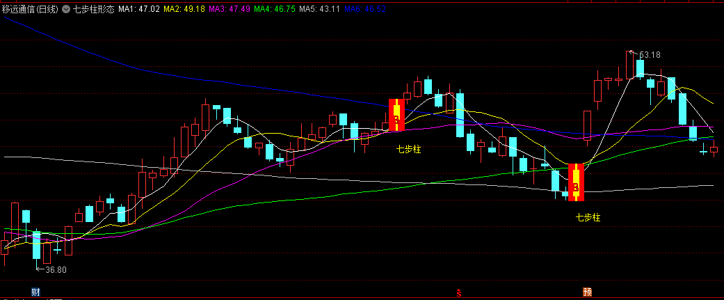 结合整体趋势:在利用七步柱形态进行交易决策时,投资者应密切关注市场的整体趋势和其他相关因素(如宏观经济环境、行业政策等)。只有在市场整体趋势向好、基本面支持的情况下,该形态的有效性才能得到更好的保障。