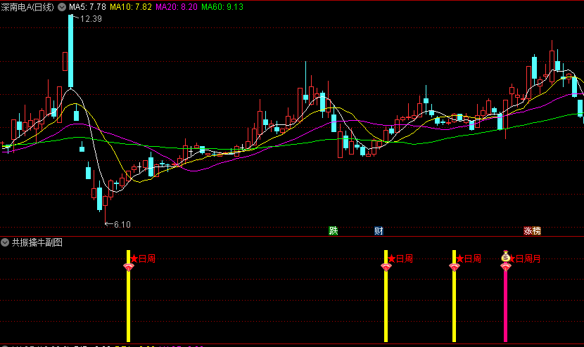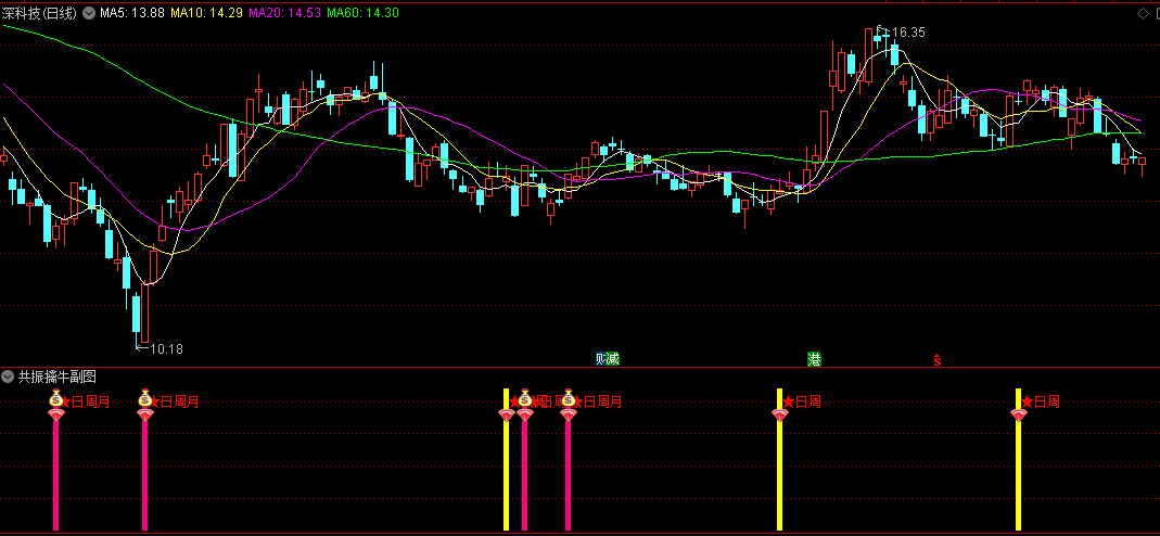 粉钻黄柱为日周信号,钱袋子粉钻粉柱为日周月信号。