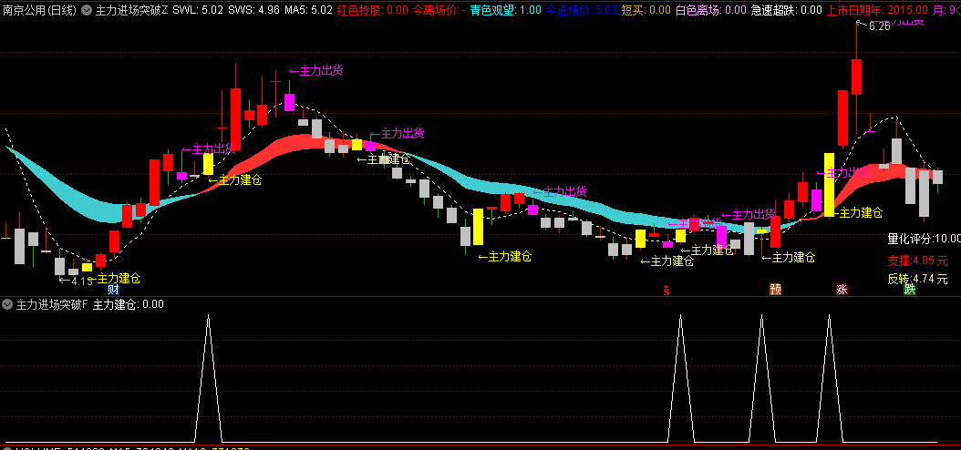 ”主力进场突破”指标体现了主力建仓--持有--主力出场的过程信号;
