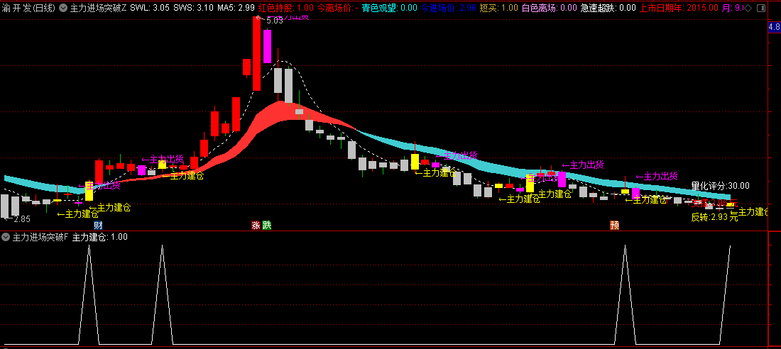 【主力进场突破】主图/副图指标 指标体现了主力建仓--持有--主力出场的过程信号 通达信 源码