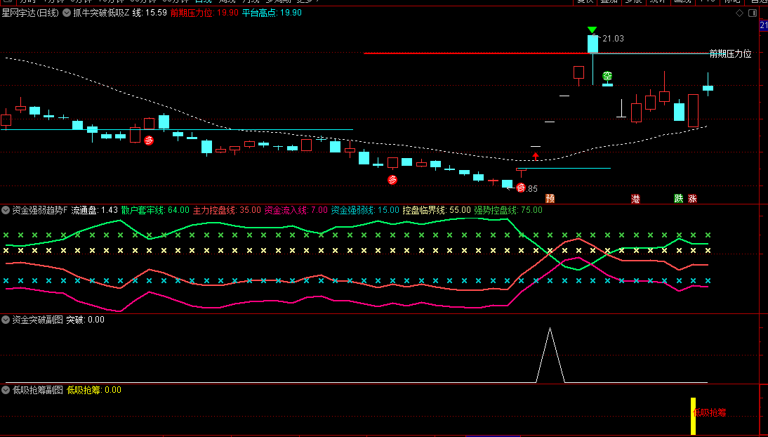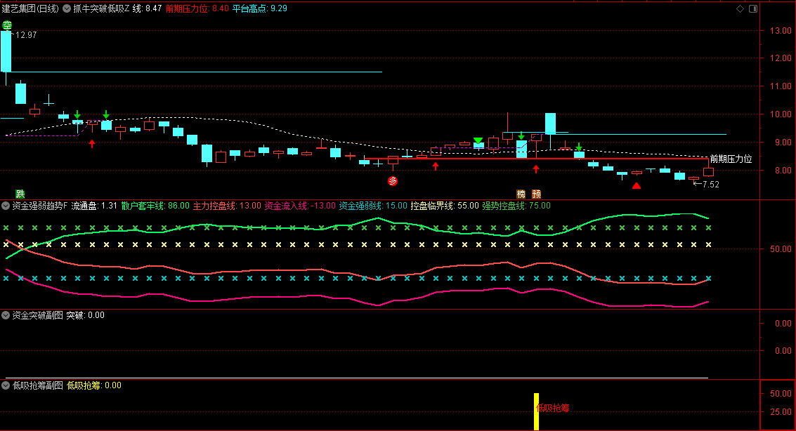 四件套组合,包括了抓牛突破低吸主图、资金强弱趋势副图、资金突破副图、低吸抢筹副图,捕捉私募扎堆或基金机构大资金扎堆主力控盘股,非常有实战意义。