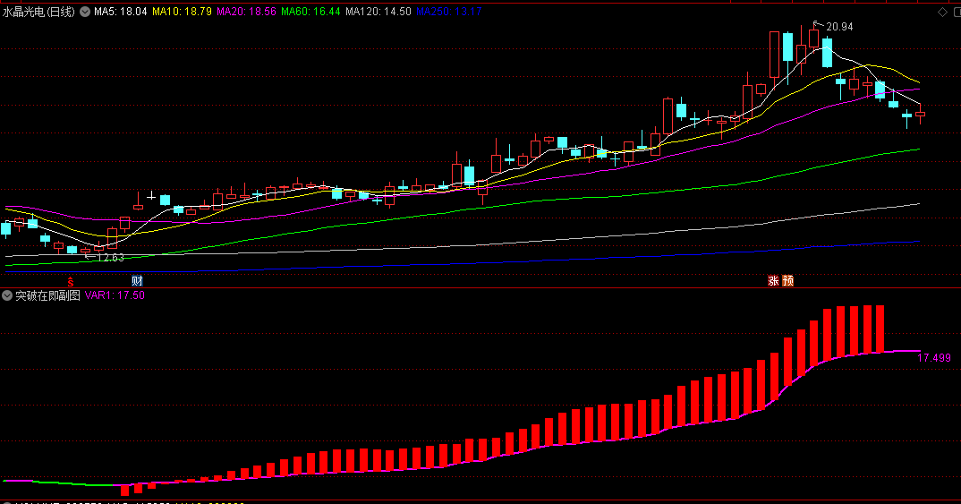 突破在即副图指标,绿线变成紫线,且伴随红柱子陡峭向上拉升,就是强势突破形成!
