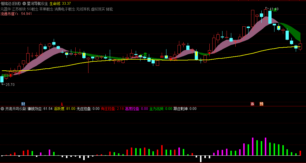 跟庄乾坤:当指标显示庄家控盘且市场活跃时,是跟随庄家进场的信号。