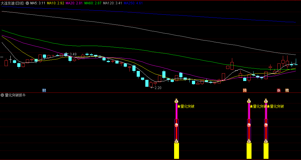 〖量化突破抓牛〗副图/选股指标 洞悉资金流向 强势信号抓牛 无未来 通达信 源码