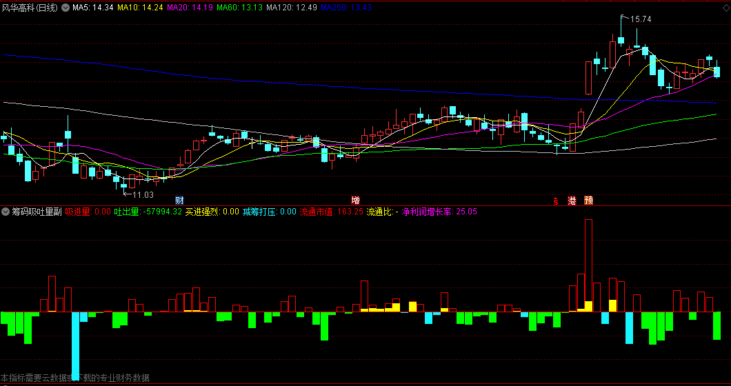 【筹码吸吐量】副图指标 净利润增长率 买进强烈 流通市值 通达信 源码