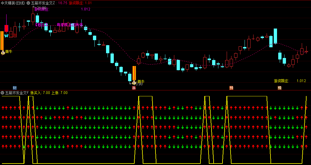 五箭齐发金叉共振主图和副图指标 主图首牛信号准