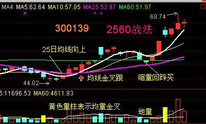 2560战法十分简单:25日均线坚决向上,5日均线上穿或回踩25日均线时,成交量5均量大于60均量就是介入机会,最好此时出现缩量小星线过渡: