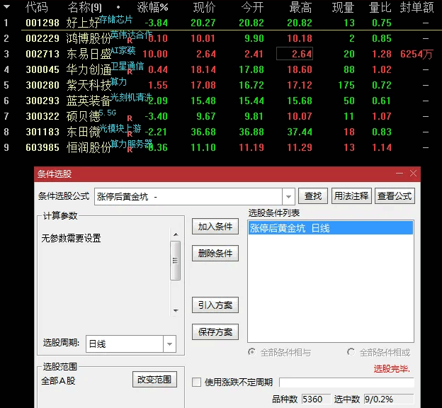 原创〖涨停后黄金坑〗副图/选股指标 平均一个月才选出1到2个 嫌少的勿下 通达信 源码