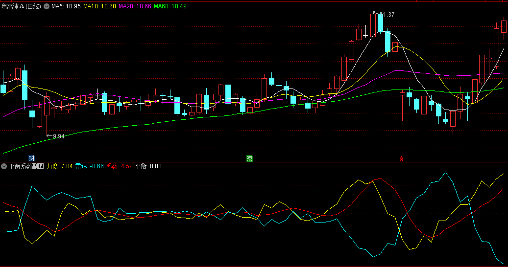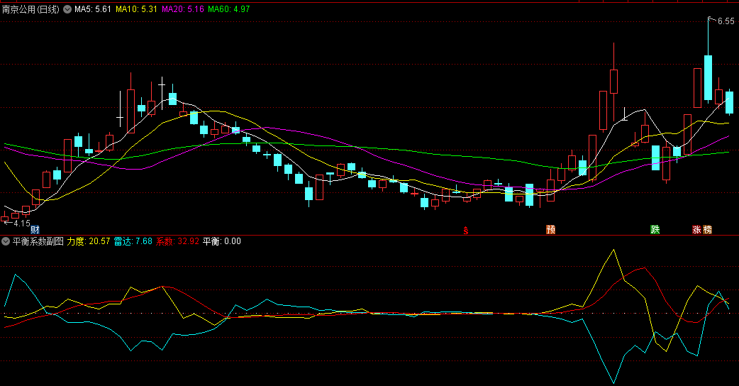 〖平衡系数〗副图指标 力度/雷达/系数三线开合 自己参考 通达信 源码