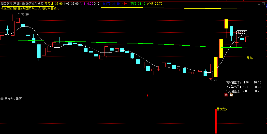 两个指标强区龙头妖股主图指标、潜伏龙头副图指标一起配合使用,抓强势区域的龙头妖股!