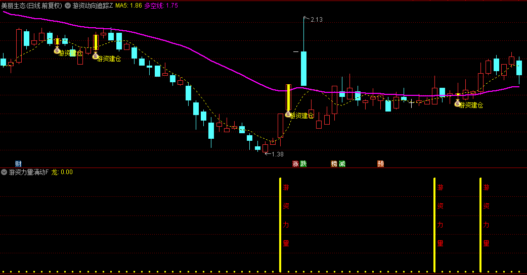 游资动向追踪主图核心指标:作为趋势敏锐探测器,该指标巧妙融合经典均线理论与K线形态分析,精准捕捉市场中的趋势异动点。其独特之处在于,能够高亮显示趋势与周期内最为显著的波动迹象,这些往往是大型资金悄然布局的信号。当“游资动向追踪”信号浮现,即是提示投资者大资金可能正在积极建仓的关键时刻。