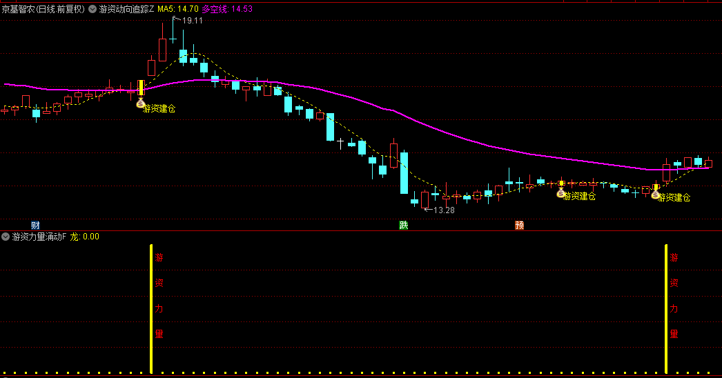 游资力量涌动副图辅助指标:侧重于量能变化的深度解析,量能作为市场情绪的直观反映,其异常波动往往预示着资金流动的加剧。本指标通过监测特定周期内的量能异常,精准锁定资金交易活跃的股票,一旦“游资力量涌动”信号显现,即表明有大资金正密切关注并可能即将介入该股,为投资者提供了宝贵的入场线索。