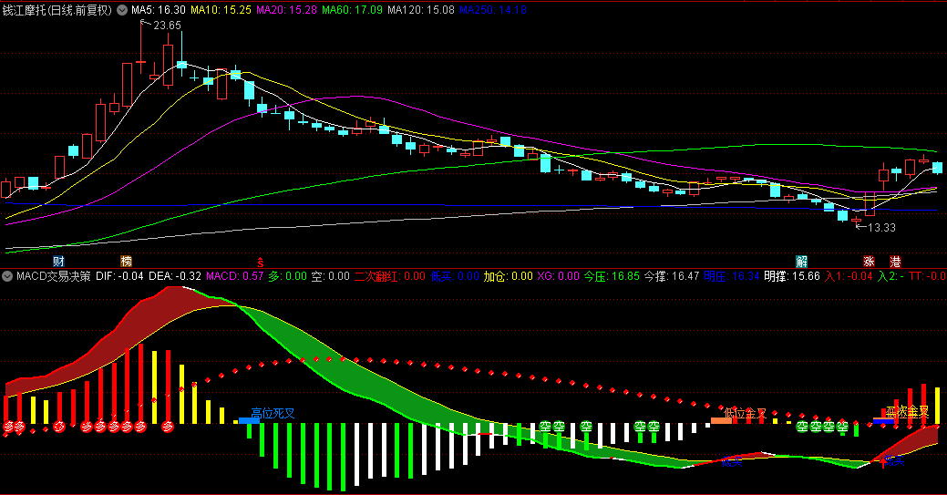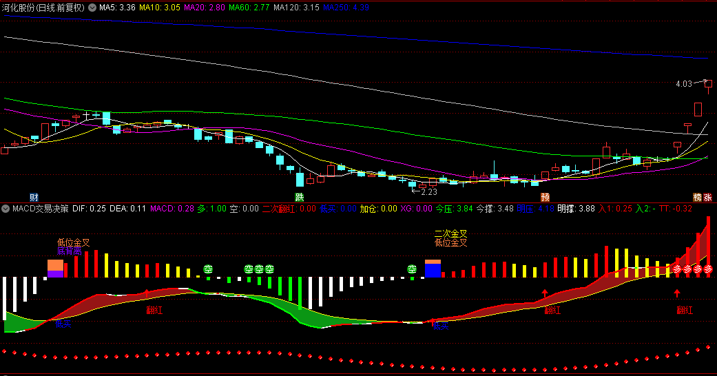 【MACD交易决策增强版】副图指标 含主要信号及用法详解 基于移动平均收敛/发散指标进行设计 通达信 源码