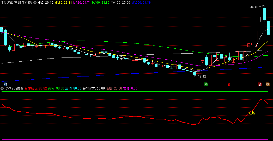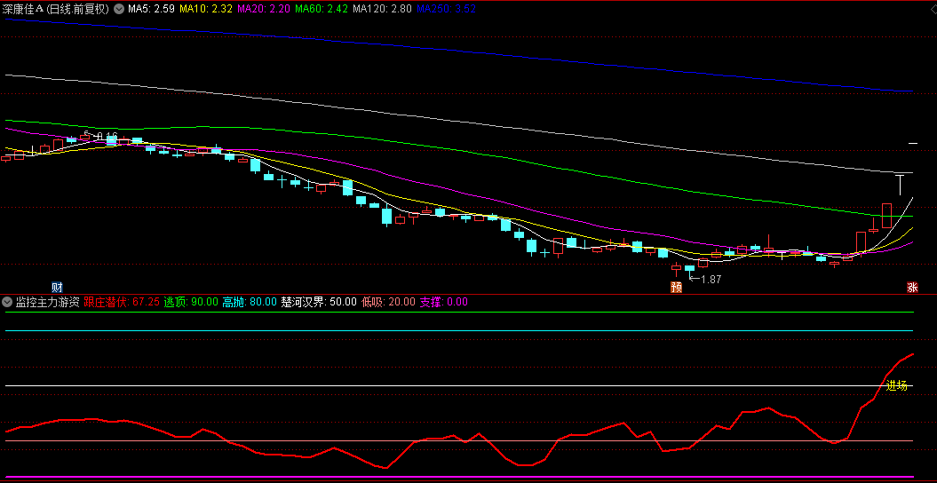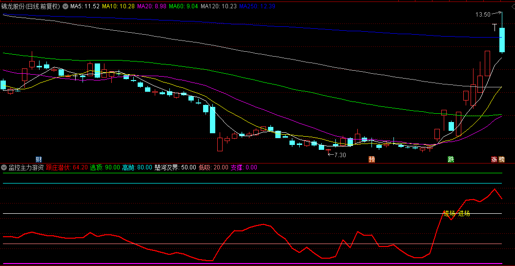 指标说明:任何标的都可能有主力庄家在控盘,此指标的原理是监控主力的控盘程度,抓住具有上涨潜力的个股。