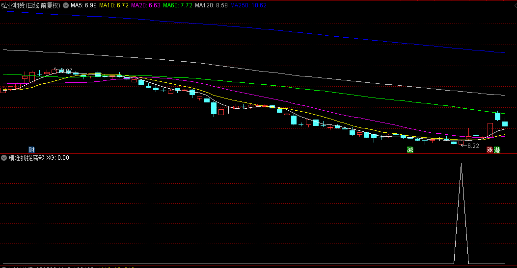 快速下跌后的反转信号:股价经历长时间下跌后,若突然加速下跌并伴随长下影线的止跌K线出现,同时成交量逐渐萎缩后放大,这往往是抄底的黄金时机。