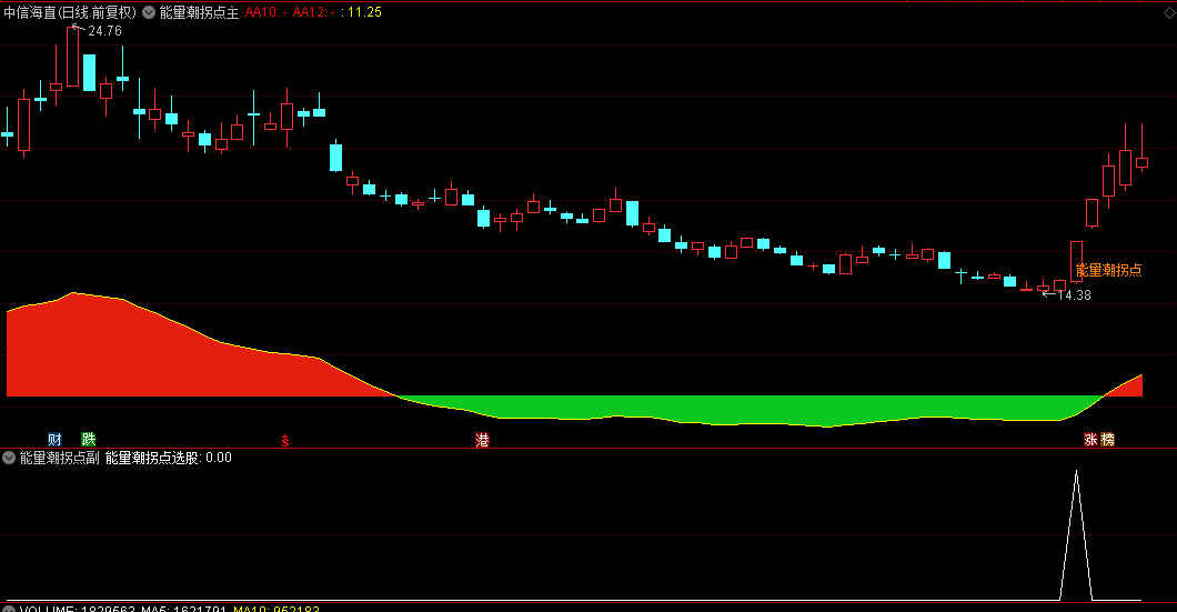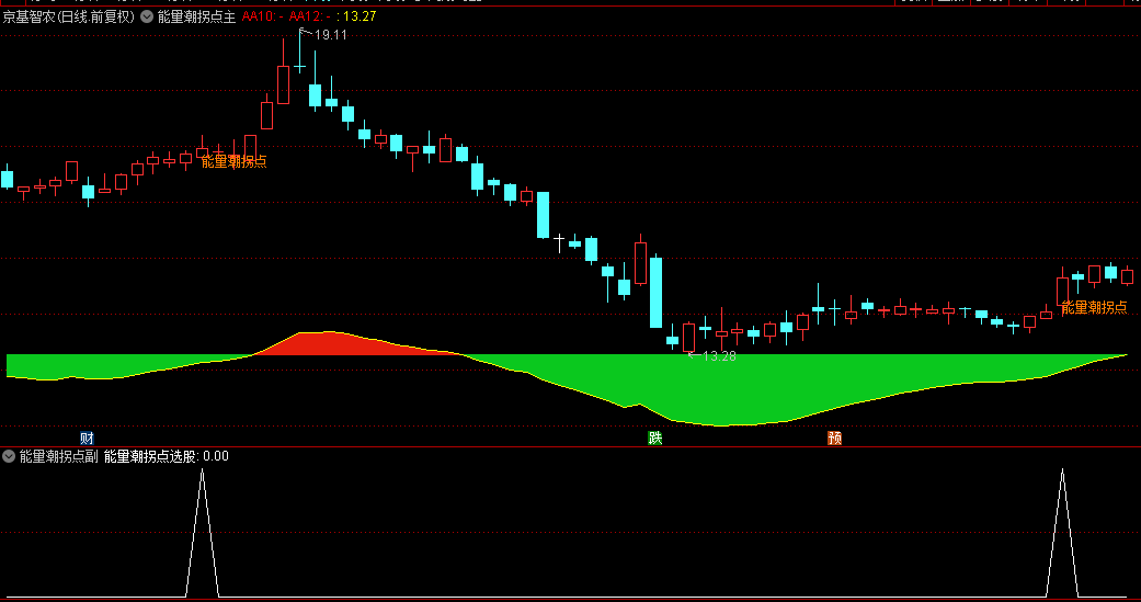 【能量潮拐点】主图/副图/选股指标 红色主升能量潮,绿色为主跌,拐点出现是机会!