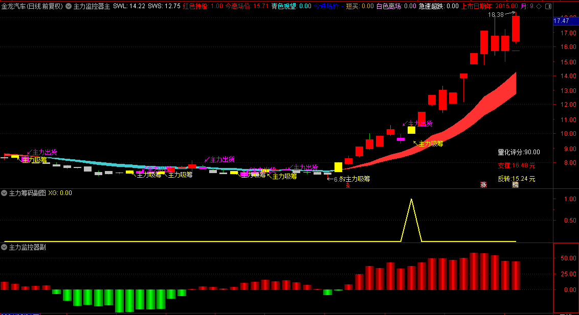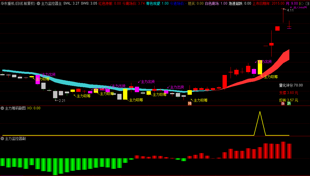 精品【主力核心监控系统】主图/副图/选股策略指标,精心设计量化分析,专注于短线跟随主力捕捉上涨行情,兼容手机与电脑!