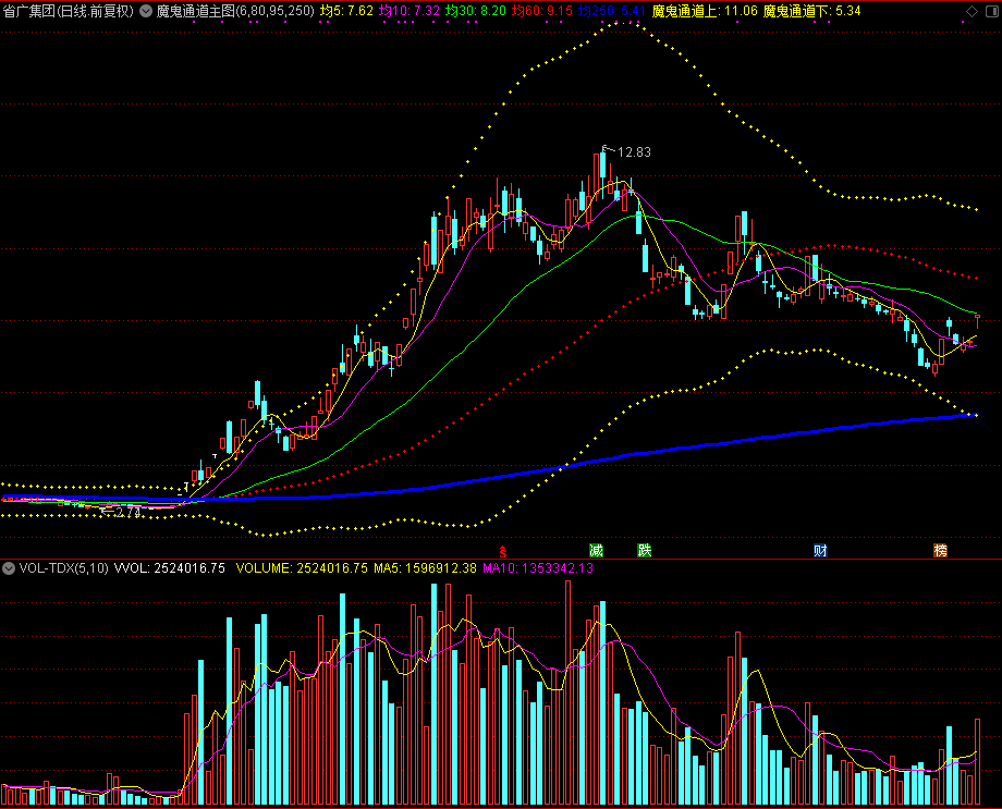 魔鬼通道上:均30 + 2*STD(CLOSE,60) COLORYELLOW,pointdot linethick3 ;