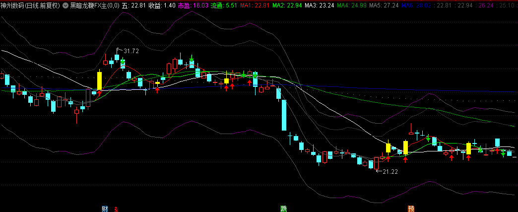 分享一个古老的【黑暗龙鞭】主图指标,出黄柱后不破新低,趋势开始多头,近期做突破用还不错!